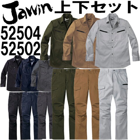 上下セット ジャウィン(Jawin) ストレッチ長袖シャツ 52504 (EL)&ノータックカーゴ 52502 (91〜112cm) セット (上下同色) 自重堂 秋冬用作業服 作業着 取寄